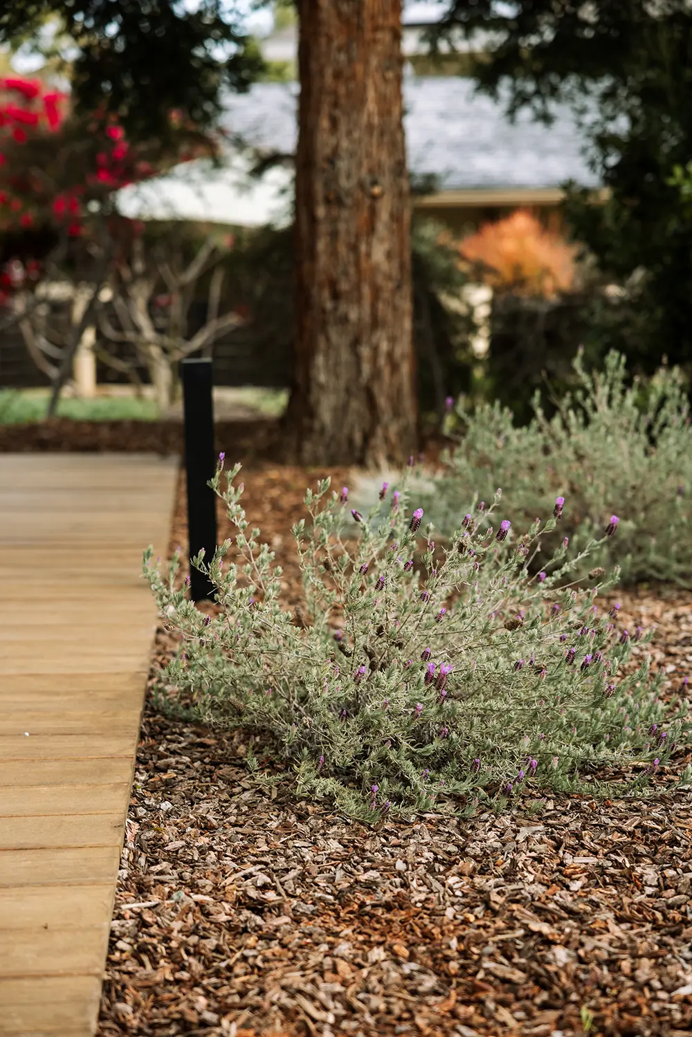 The design challenge here was to solve the grade issues while complementing the architecture of the house and we love how this one came out.