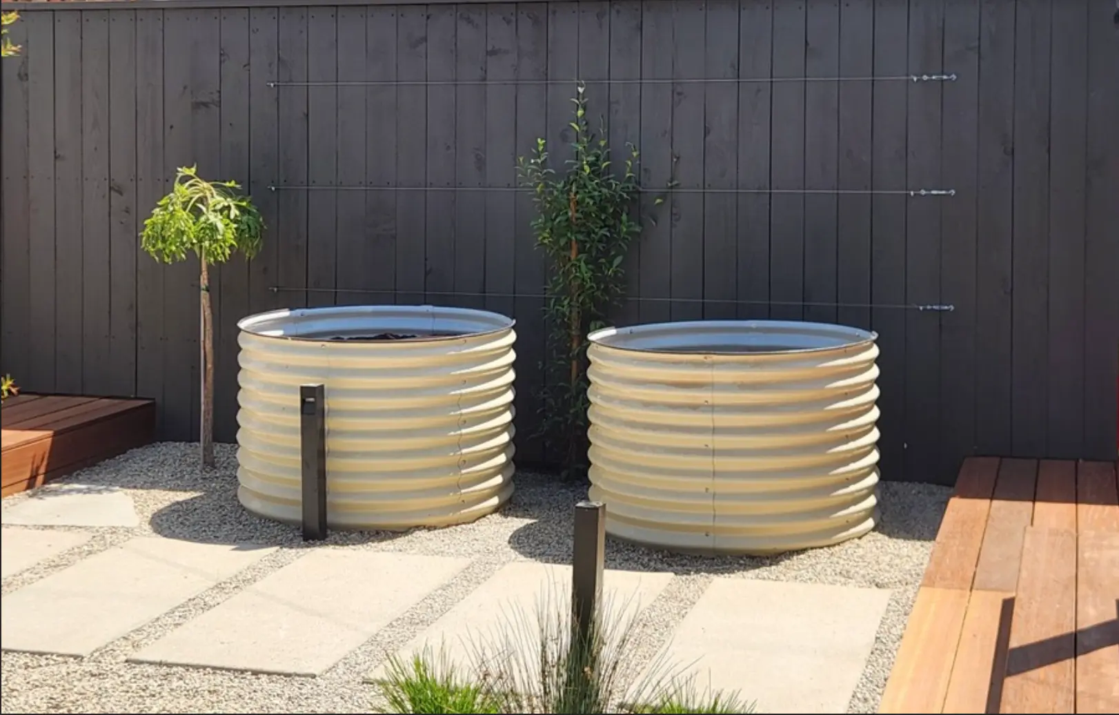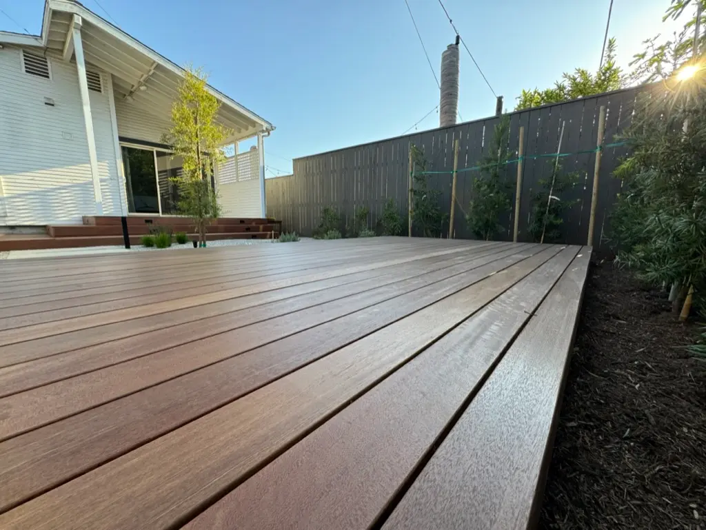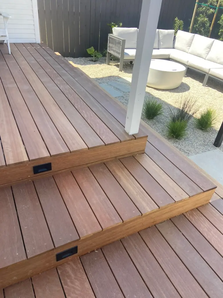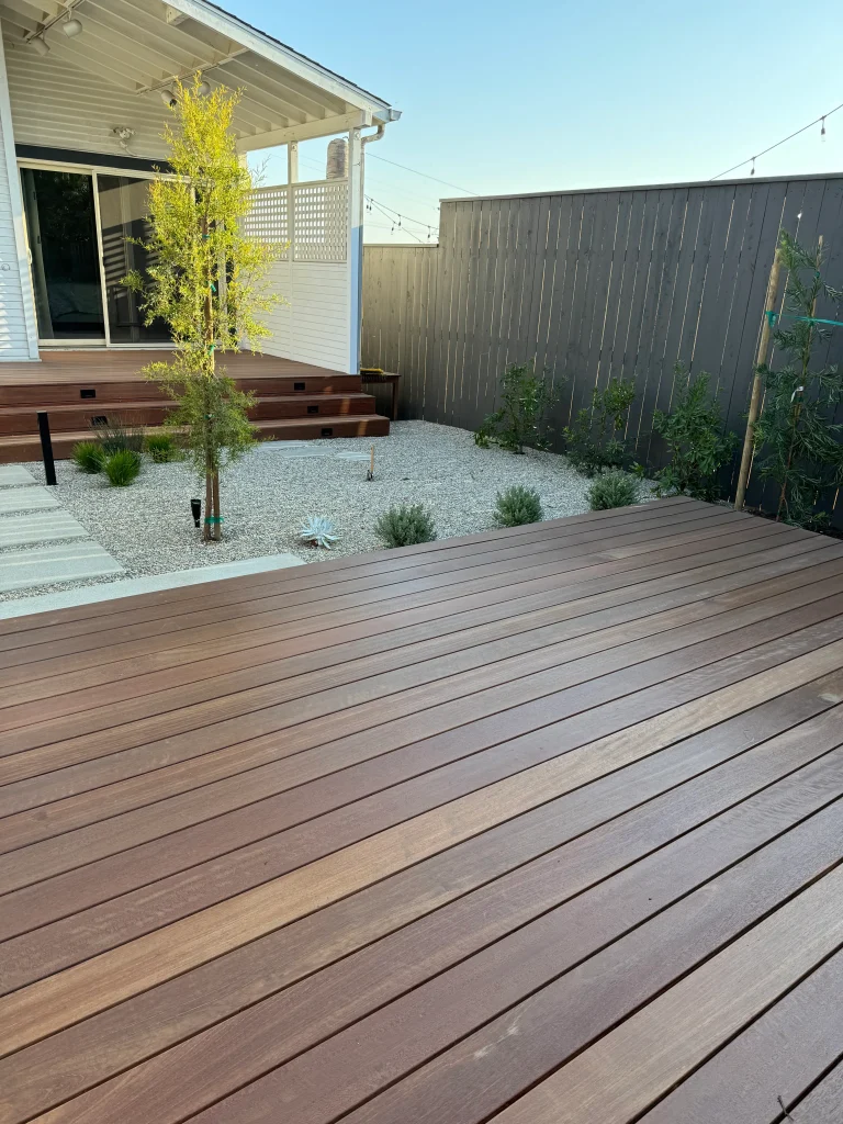 This client’s yard was an unusable mess when they bought their house. We opened it up with new Mangaris decks and wide stairs that extend the porch into the landscape. Clean gravel, bold fencing, raised kitchen gardens, and concrete paths give the space structure and softness. We added a firepit lounge, modern lighting, and a second deck for dining off the office. The contemporary layout, plants and materials selections make this a classic landscape that looks great and feels great to be in.